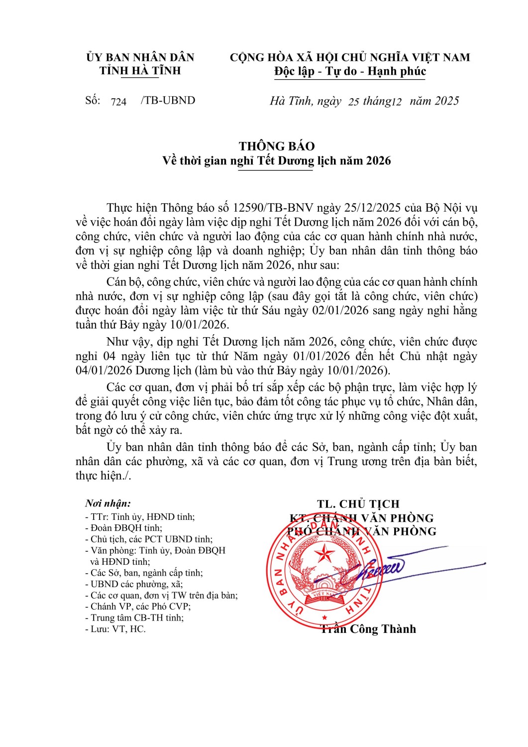 THÔNG BÁO LỊCH LÀM BÙ TẾT DƯƠNG LỊCH 2026